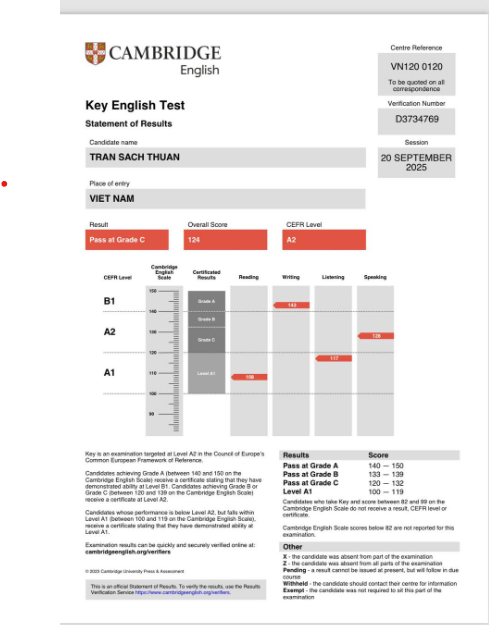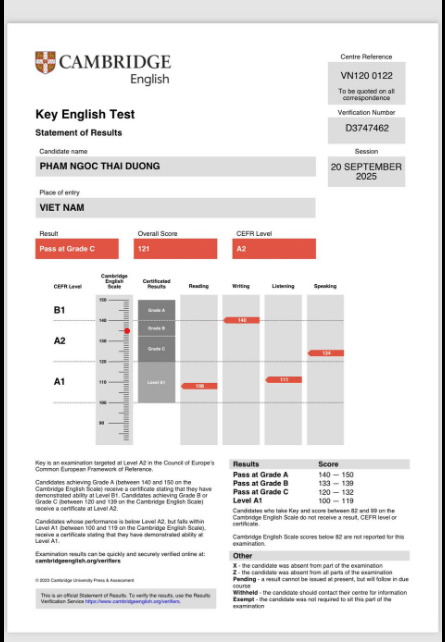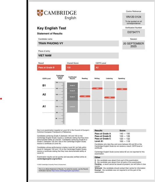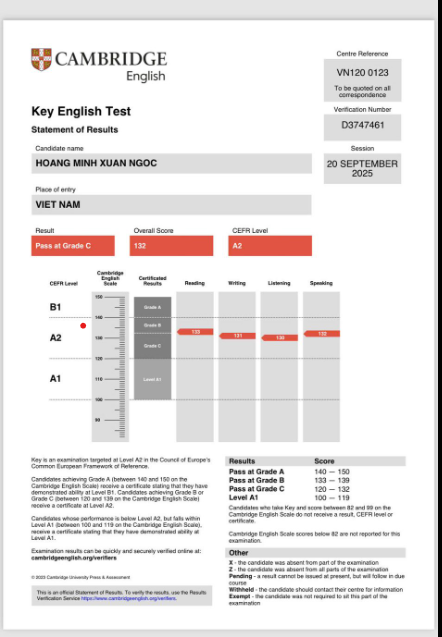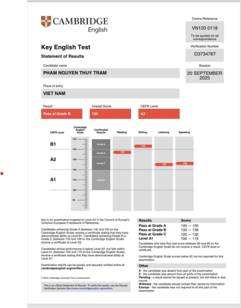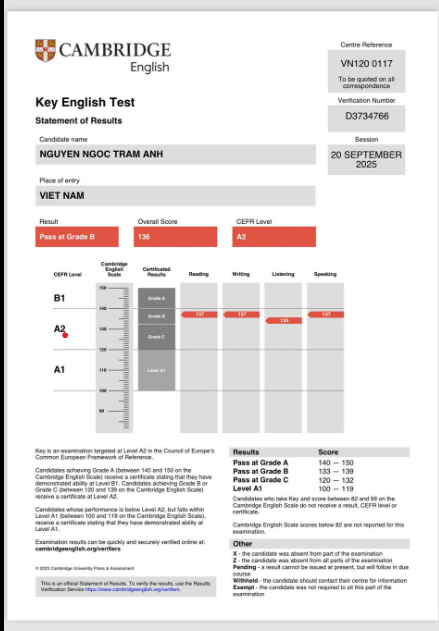 Trung tâm tự hào vinh danh 7 học viên tiêu biểu đã xuất sắc nhận được chứng chỉ KET trong đợt thi vừa qua. Cùng xem qua thành tích của các em!